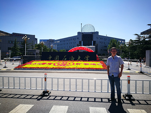 2017年8月13日到9月27日期间Matt在中国开始了正式的访问与交流。Matt的主要接待单位为中国石油大学(北京)的彭勃教授。交流期间Matt对岩心样本进行X光CT影像实验分析。此外Matt和彭教授讨论了针对化学追踪剂与岩心驱替课题双方可能开展的合作。项目提议中包括共同发表几篇有关化学追踪剂的论文,以及共同申请有关二氧化碳聚合物的科研经费。在北京期间,Matt还拜访了中石化,作了报告,分享经验。