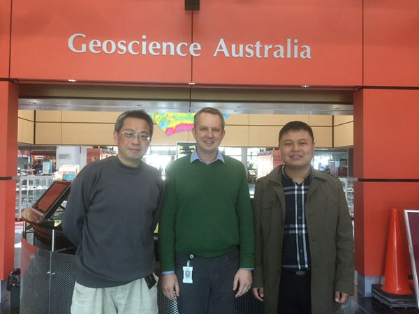 马鑫(右)与王留奇(左)和Andrew Feitz (中)在澳大利亚地球科学局合影